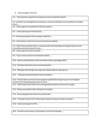 Soal uts penjas kelas 7 semester 1.